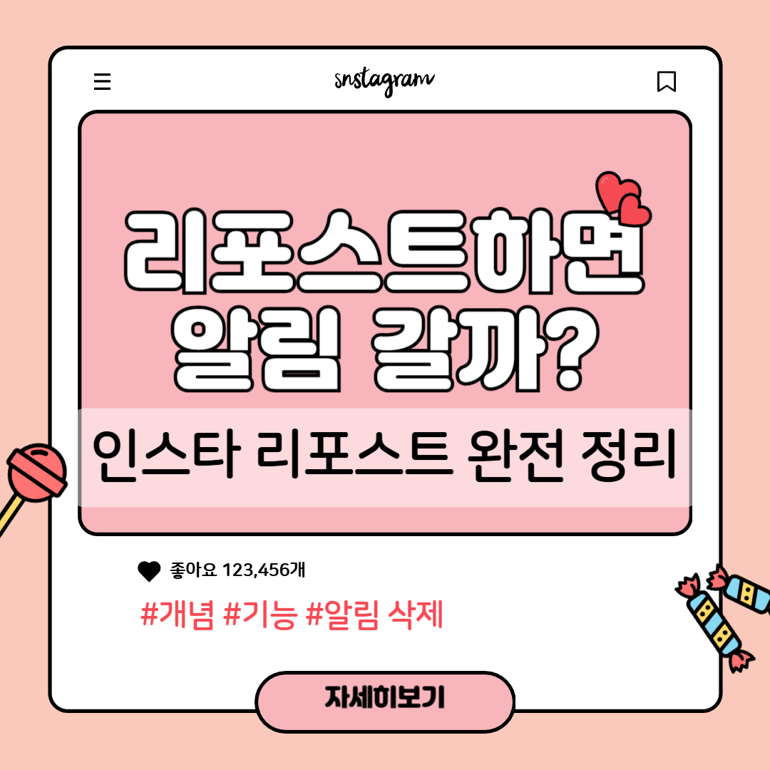 인스타그램 리포스트의 개념부터 알림 여부, 기능 설명, 그리고 알림 삭제 가능 여부까지 한 번에 정리해드리겠습니다.